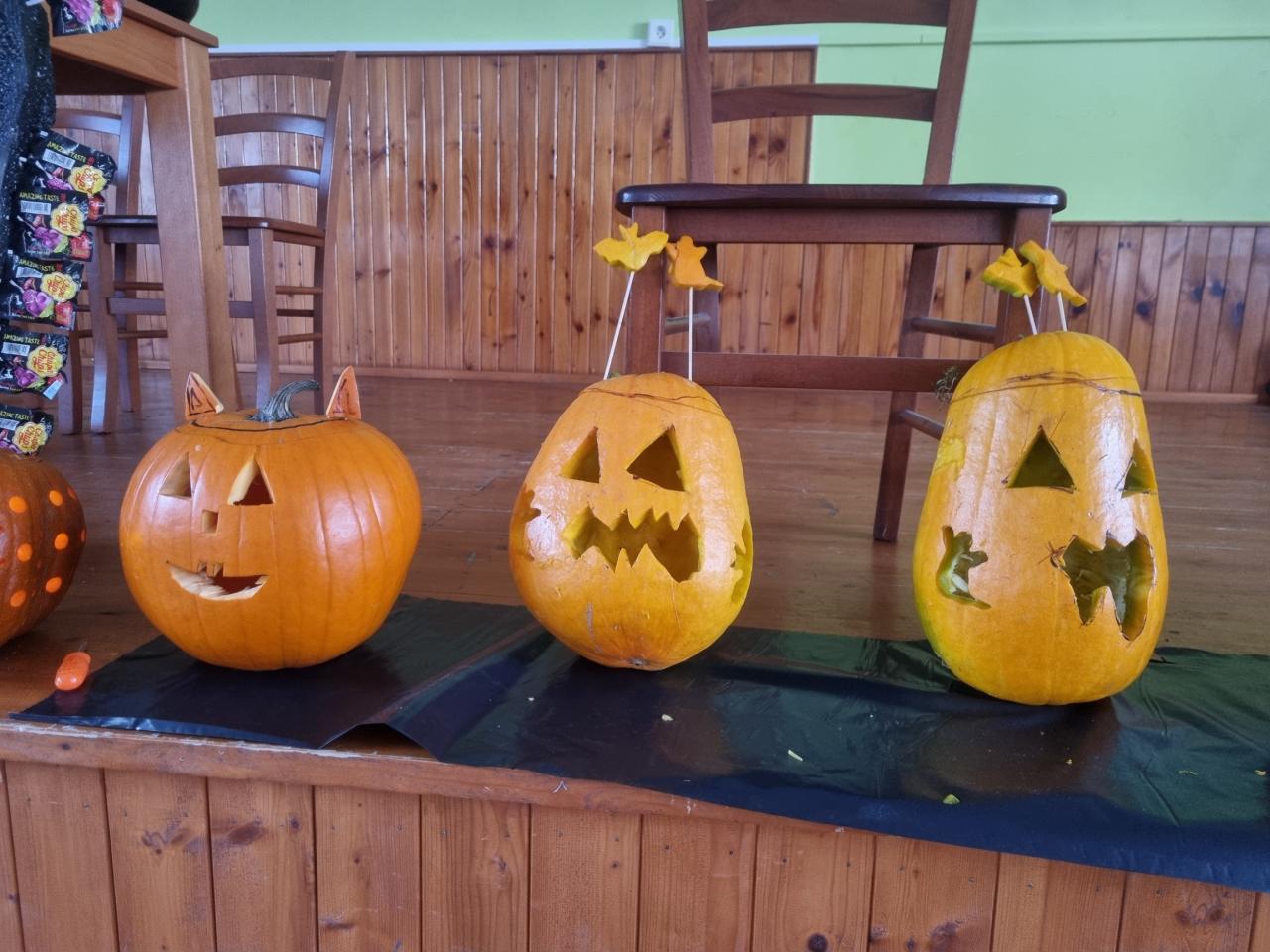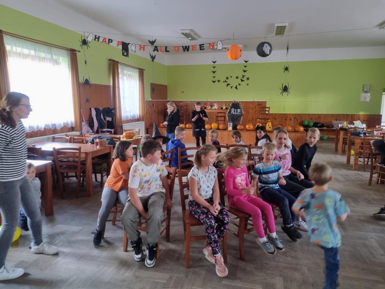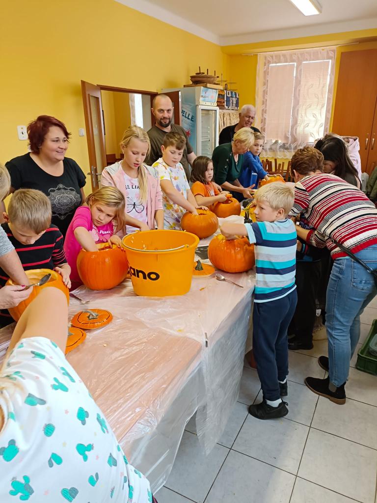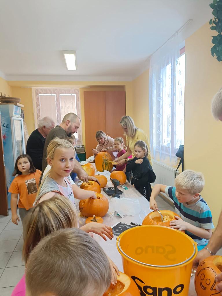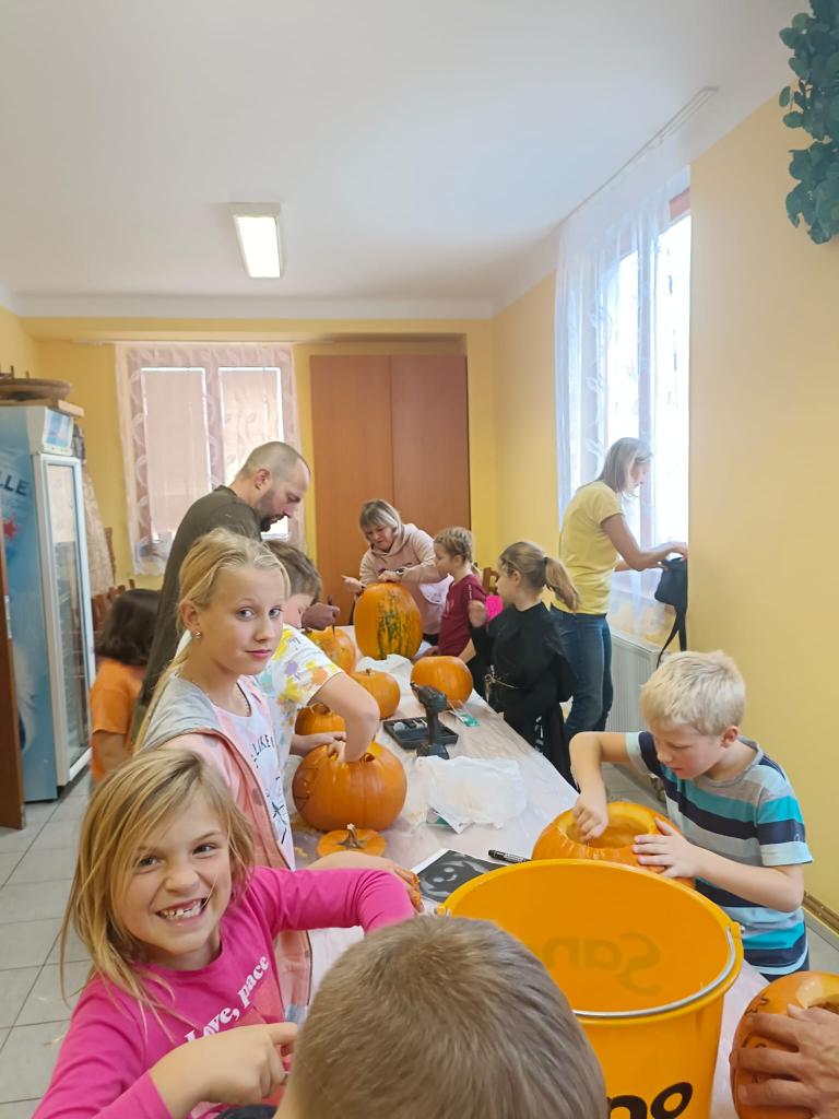 V sobotu 28. 10. si děti užily báječné odpoledne- vykrajovaly dýně, ochutnávaly "strašidelné" sladkosti, soutěžily a až do tmy tančily na diskotéce. Nikomu se nechtělo domu. Za dobrý nápad patří díky Lence Kasové a Janě Manové a ostatním dospělým, kteří pomohli s organizací.