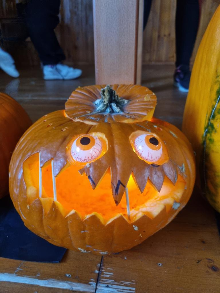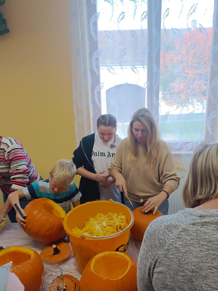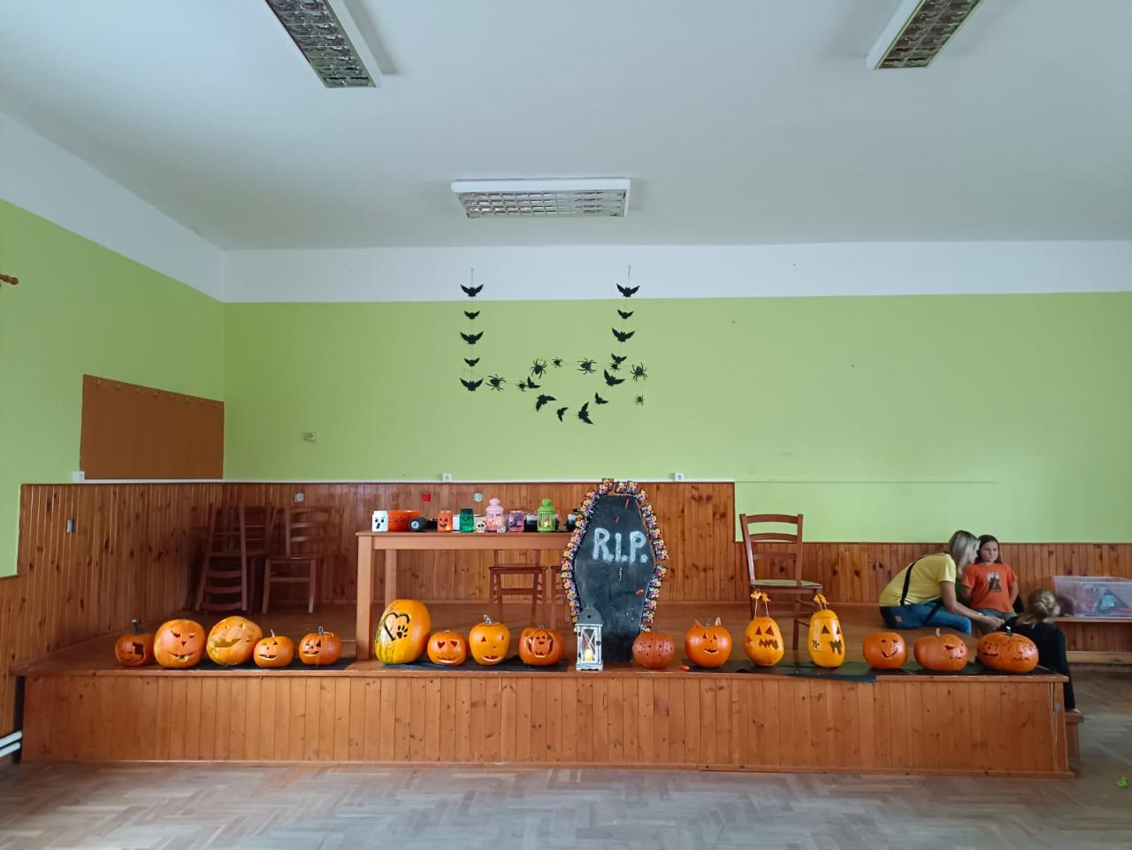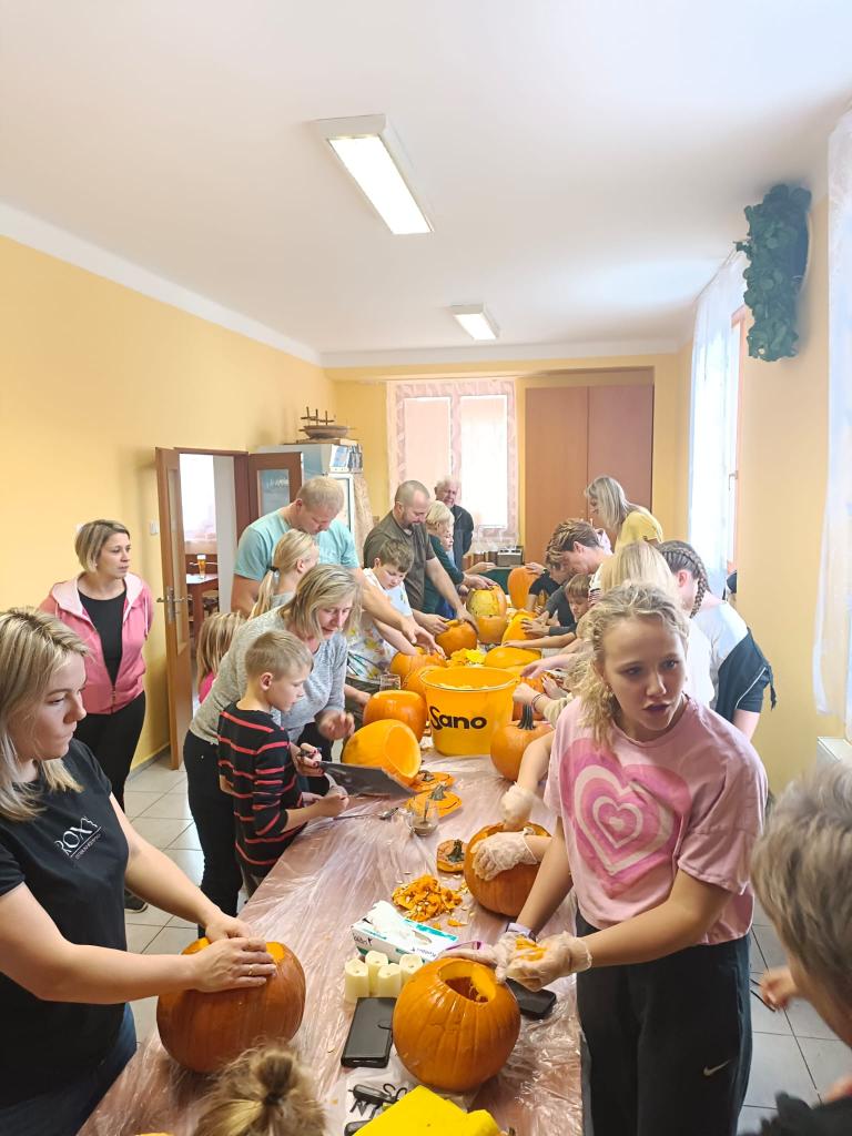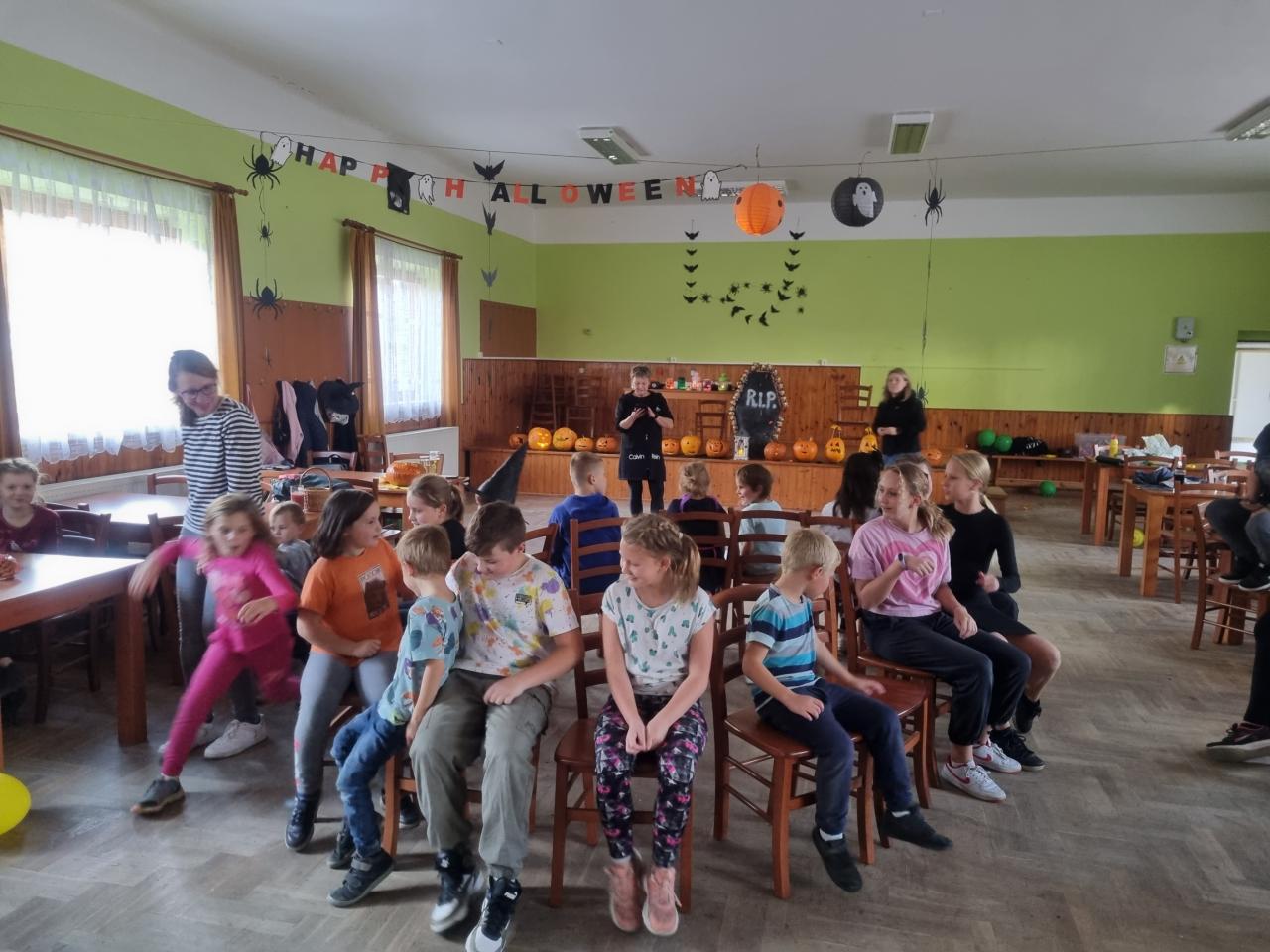 V sobotu 28. 10. si děti užily báječné odpoledne- vykrajovaly dýně, ochutnávaly "strašidelné" sladkosti, soutěžily a až do tmy tančily na diskotéce. Nikomu se nechtělo domu. Za dobrý nápad patří díky Lence Kasové a Janě Manové a ostatním dospělým, kteří pomohli s organizací.