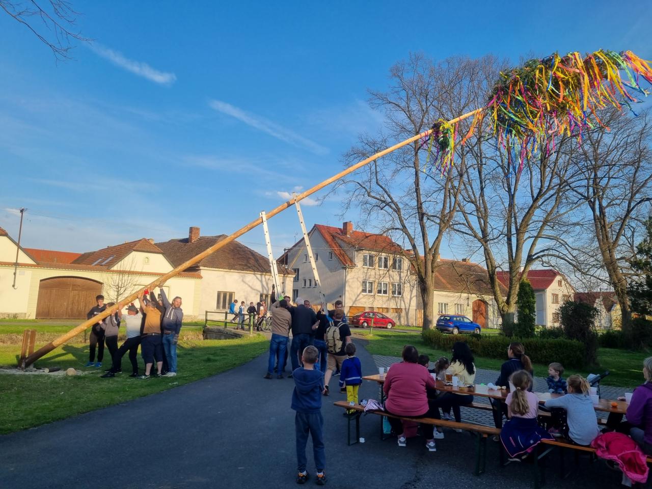 Stavění máje se maximálně vydařilo - krásné počasí, hodně lidí, dobré pivo, výborné špekáčky... a máj dočkal rána :-)