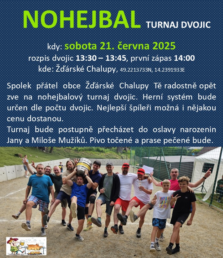 Spolek přátel obce Žďárské Chalupy Tě zve na turnaj dvojic, začátek v 13,30, hřiště Žďárské Chalupy.